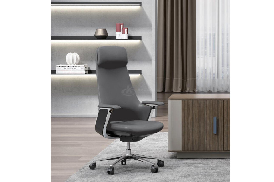 .优质西皮或巴西进口头层黄牛皮饰面.双层背弯板.高弹力海绵.铝合金扶手架连体扶手,配扪皮扶手面.配4档倾仰锁定功能.100#沉40mm电镀汽杆.350铝合金脚.60/25防震黑色PU轮