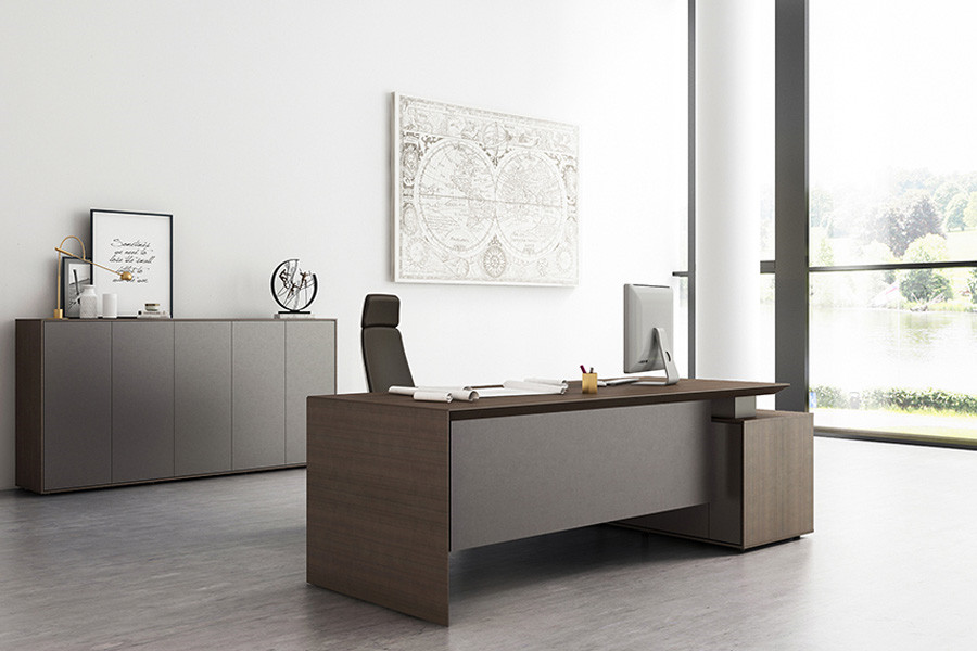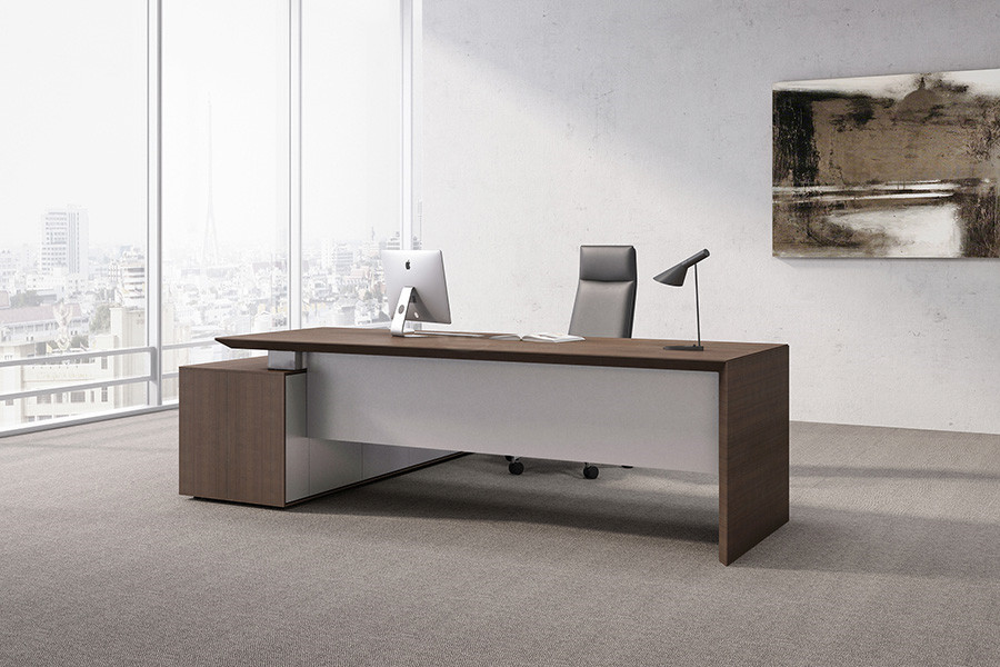 班台取材自然环保、可完全回收再利用 , 用最少的素材创造最高效益。外观简单自然但内在蕴含无所不能的千变万化。薄而不锐,厚而不重的设计手法,整体沉稳大气又不失轻盈和时尚,彰显优雅而稳重的商务气息。