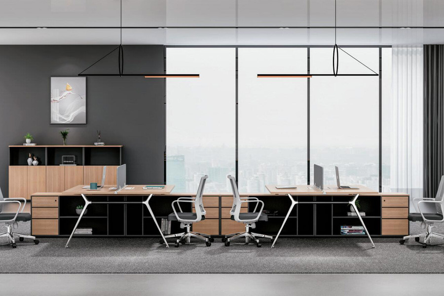 职员桌短柜、长柜、无柜因需选择,均可无限续接,长短柜混搭还可适用于1+n的小组联动模式,打造更加灵活多变的空间布局。通体台面的职员对桌中间无拼接,一体观感更显大气;