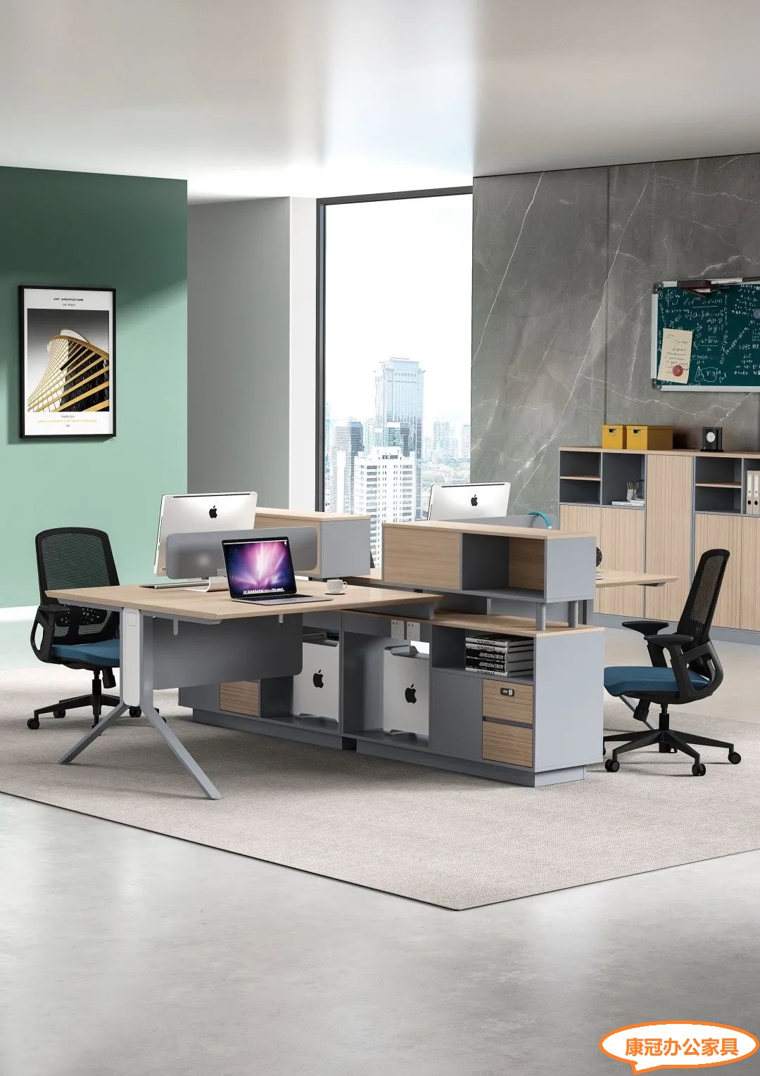 第四点钢木办公家具:简单的几何结构、简单的钢木组合和简单的色彩表现,表达了钢木办公家具对简约之风。