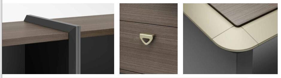 3、封边:采用优质激光封边条,甲醛释放量未检出,耐变形、耐开裂,无缝,零胶线,符合QB/T4463-2013《家具用封边条技术要求》标准。