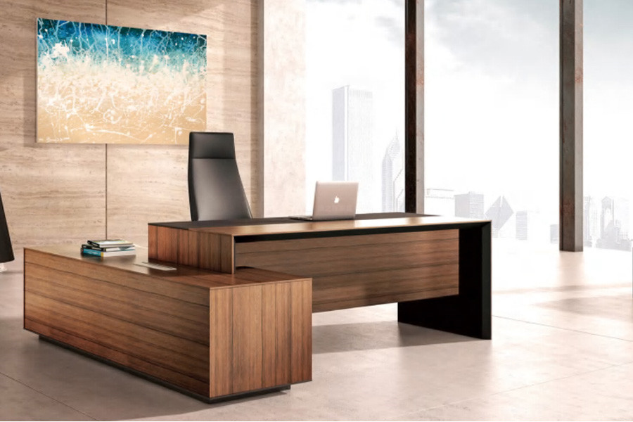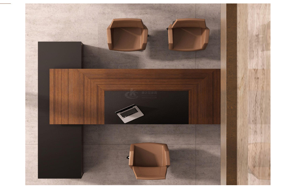 大班台在与表达空间使用者的那份精神气节,设计的灵感源于西方文化的骑士精神,所要表达那份锋芒,勇敢,但保函睿智的精神世界,在产品的造型语言上采用了简约笔挺的造型,大斜边的台面设计方式,来诠释骑士的锋芒和力量气质,而附带圆角的辅助设计,也在阐述着一种安全感,在配套的文件柜层板处可选配增加 LED 的设计,是产品更加具有科技感和氛围效果,也蕴涵着事业的光明与未来。